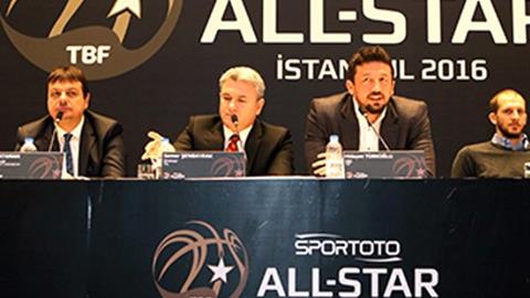 Spor Toto All-Star 2016’da forma giyecek Asya ve Avrupa karmalarının kadroları, Wyndham Grand Hotel’de düzenlenen basın toplantısıyla kamuoyuna açıklandı. Toplantıya Türkiye Basketbol Federasyonu CEO’su Hidayet Türkoğlu, TBF Yönetim Kurulu Üyesi Raşit Akın, TBF Genel Sekreteri Celal Arısan, BSL Lig Direktörü Samer Şenbayrak, Avrupa Karması Başantrenörü Ergin Ataman (Galatasaray Odeabank), All-Star’da yer alacak oyunculardan Sinan Güler (Galatasaray Odeabank), Scottie Wilbekin (Darüşşafaka Doğuş), Kartal Özmızrak (İstanbul Büyükşehir Belediyesi Spor Kulübü), TBF ve organizasyon yetkilileri ile basın mensupları katıldı.