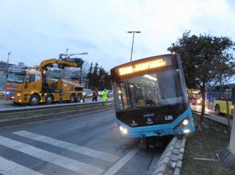Üsküdar-Boğaziçi Köprüsü bağlantı yolunda İstanbul Büyükşehir Belediyesi’ne bağlı özel halk otobüsü, bariyerlere çıkarak devrilme tehlikesi geçirdi. Otobüs bariyerden kurtarılırken, bağlantı yolunda uzun araç kuyrukları oluştu.