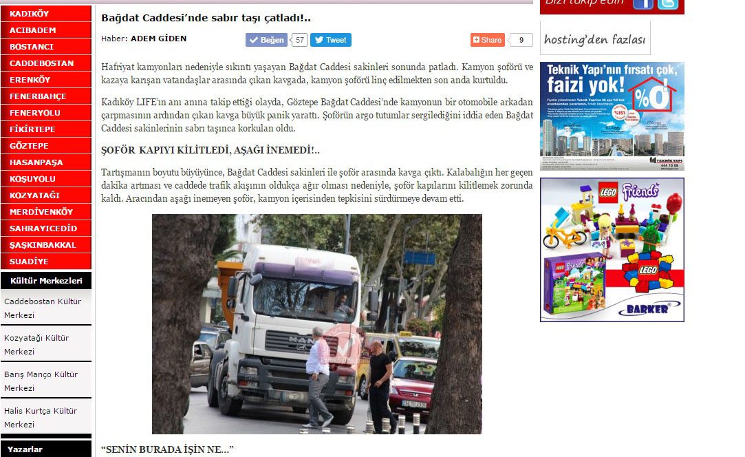 Kadıköy Life Dergisi de hafriyat kamyonlarına yönelik sıkça uyarılarda bulunmuş, haber ve görsellerini manşetlerine taşımıştı. 2013 yılı Eylül ayında Bağdat Caddesi’nde hafriyat kamyonu şoförü ve otomobiller arasında yaşanan büyük tartışmayı görüntüleyen Kadıköy Life Dergisi’nin özel haberi, riskin boyutlarını gözler önüne sermiş ve günlerce konuşulmuştu.