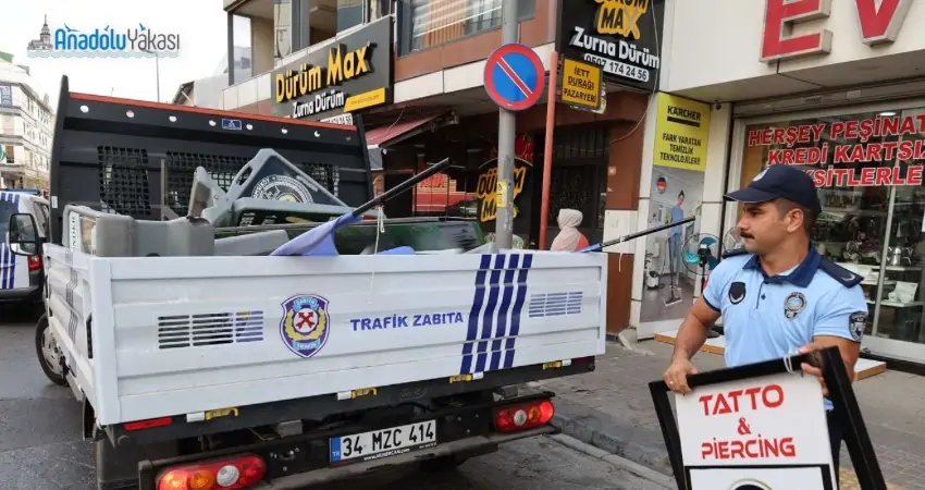 İlçede yayaların güvenliğini ve vatandaşların huzuru için tehdit oluşturan işgallere karşı gerçekleştirilen denetimlerde, kaldırımlar ve yaya geçişlerini engelleyen reklam araçları, dubalar ve çeşitli materyaller belediye zabıta ekiplerince toplanarak kaldırıldı.