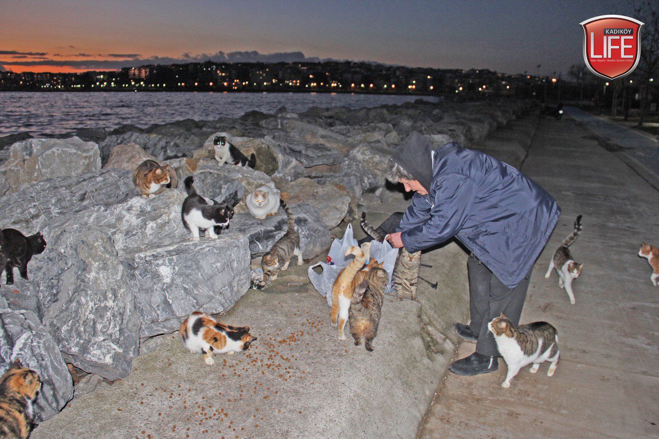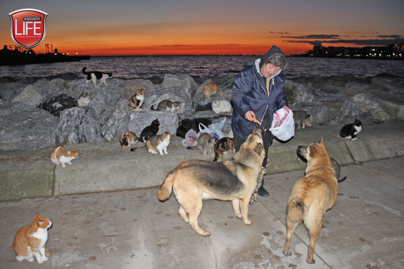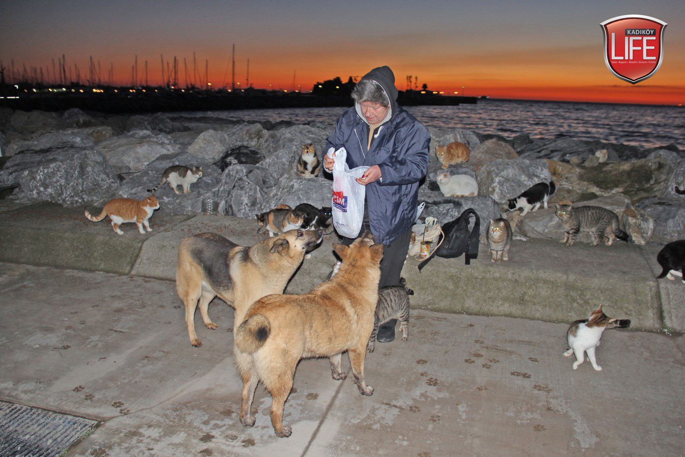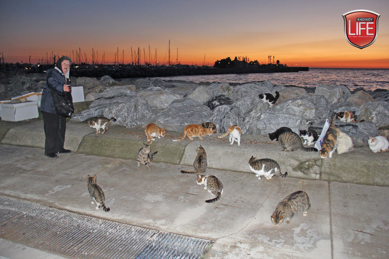 Kadıköy Life Dergisi’nin defalarca kaleme aldığı Kalamış sahilindeki kayalıklardaki kediler, her günbatımında “Harika Annelerini” gözlüyor. Yolun ucunda ellerinde torbaları ile geldiğini gördüklerinde koşar adımlarla bir araya toplanan kediler için ziyafet başlıyor. Sokak köpeklerinin “birer koruma gibi” eşlik ettiği Muhtar Harika Develioğlu; “Benim en büyük mutluluğum, onların karnının doyduğunu görmek. Mamalarını elimden yiyorlar” diyerek besisini gerçekleştiriyor. Her akşamın sonunda kedilere mamaların sağ salim ulaştırılması için yolda eşlik eden sokak köpekleri de yemekleriyle ödüllerini alıyor. Develioğlu; “Sadece Kadıköy’de değil, Türkiye genelinde ihtiyaç sahibi insanlarımız için kıyafet, gıda ve eğitim malzemelerine yönelik yardımlarımızı sürdürüyoruz. Ancak onları da unutamayız, sokak hayvanlarımızı. Fırsat buldukça köpükten evler yapıyor, üşüyen kedilerin bölgelerine bırakıyorum. Hemen sahipleniyorlar yuvalarını. Çünkü soğuktan enfeksiyon kapan kediler, birkaç gün içerisinde ne yazık ki ölüyorlar. Köpekleri de besliyoruz, çok sadıklar.. Korumam gibi sürekli yanımdalar, ayrılmıyorlar. Kedilere hiç saldırmıyorlar. Kuşlara da ekmekler bırakıyoruz, özellikle kışın çok ihtiyaç duyuyorlar. Desteğini esirgemeyen herkese yürekten teşekkürlerimi sunuyorum” mesajı verdi.