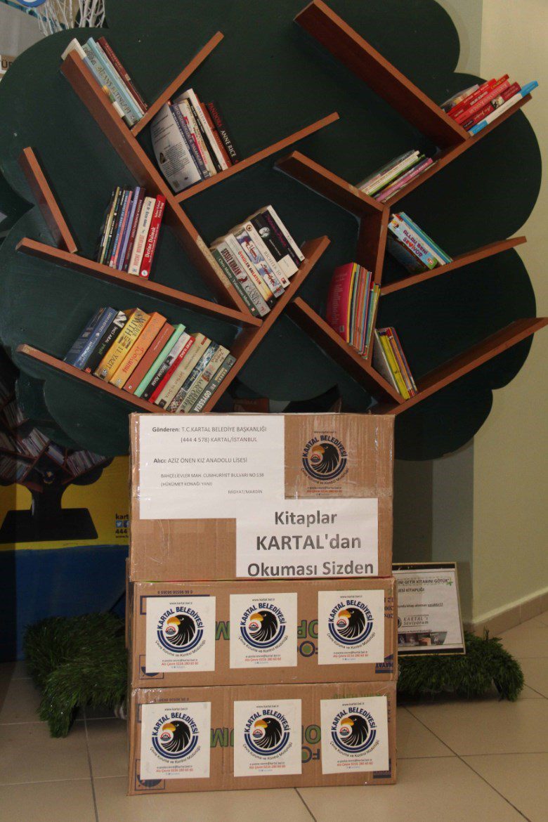 Kartal genelinde sekiz noktada bulunan kitap ve oyuncak paylaşım kumbaralarından çıkan kitaplardan kullanılamayacak durumda olanları, geri dönüşüme gönderen Çevre Koruma ve Kontrol Müdürlüğü, iyi durumda olan kitapları ise talepte bulunan kurumlara bağışlamaya devam ediyor. Önceki kitap yardımları ile ilgili olumlu geri dönüşler alan Kartal Belediyesi, son aylarda toplanan kitapları ise Mardin’ in Midyat ilçesinde bulunan Aziz Önen Kız Anadolu Lisesi’ ne gönderdi.