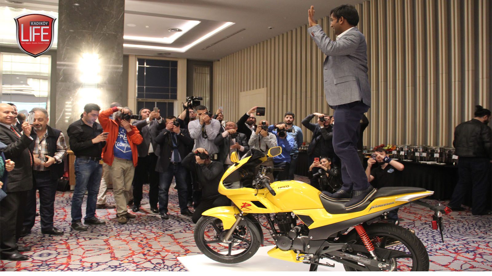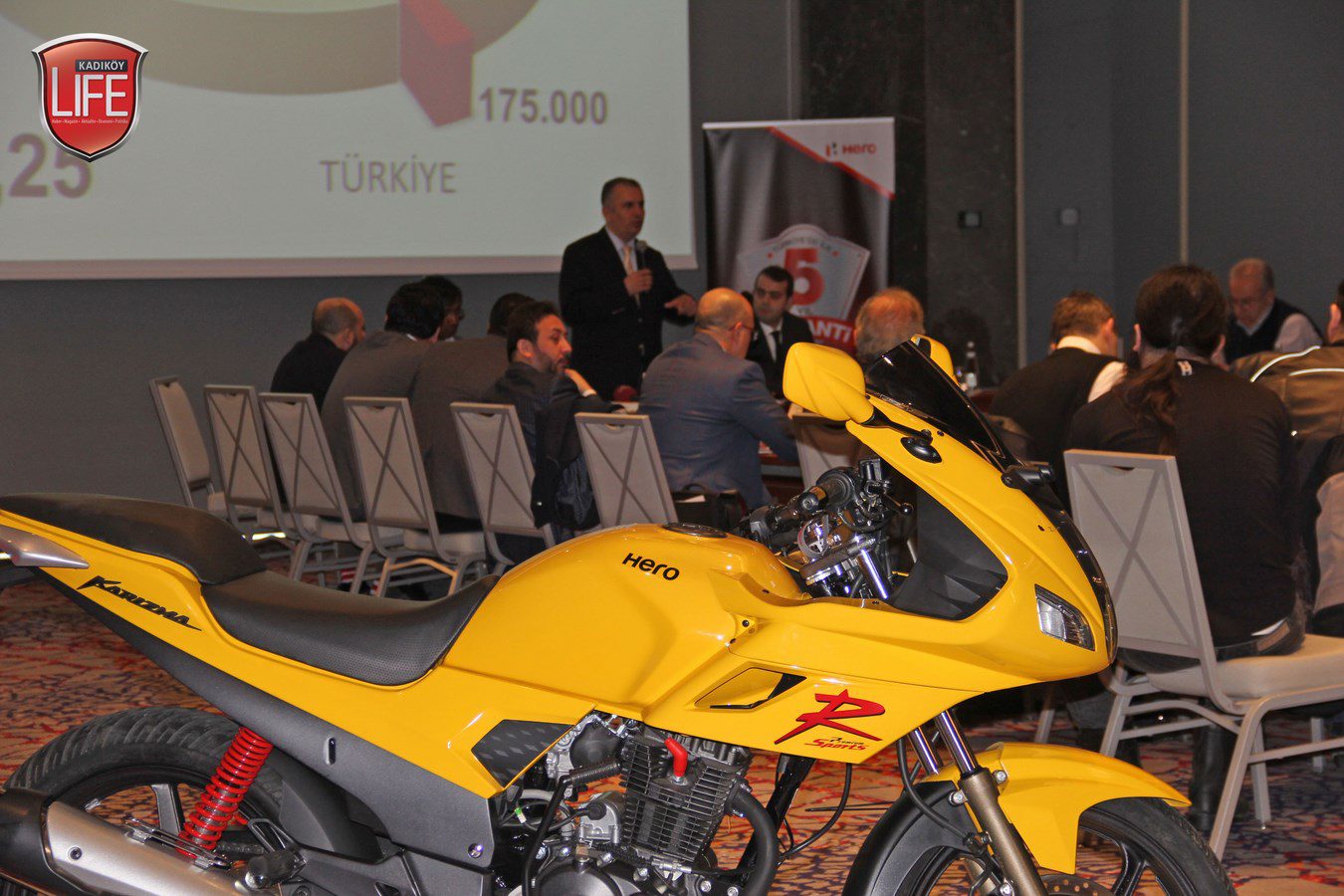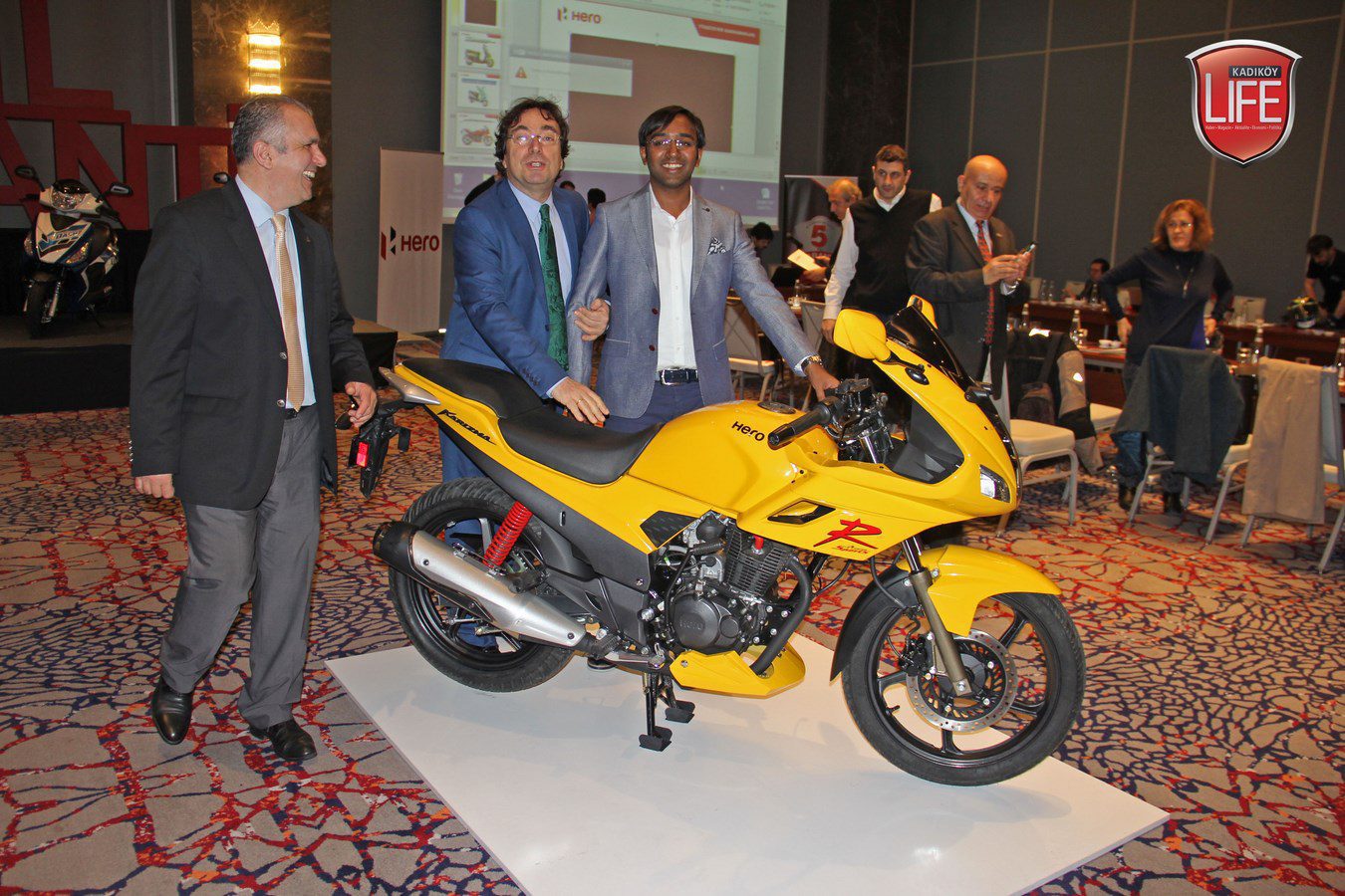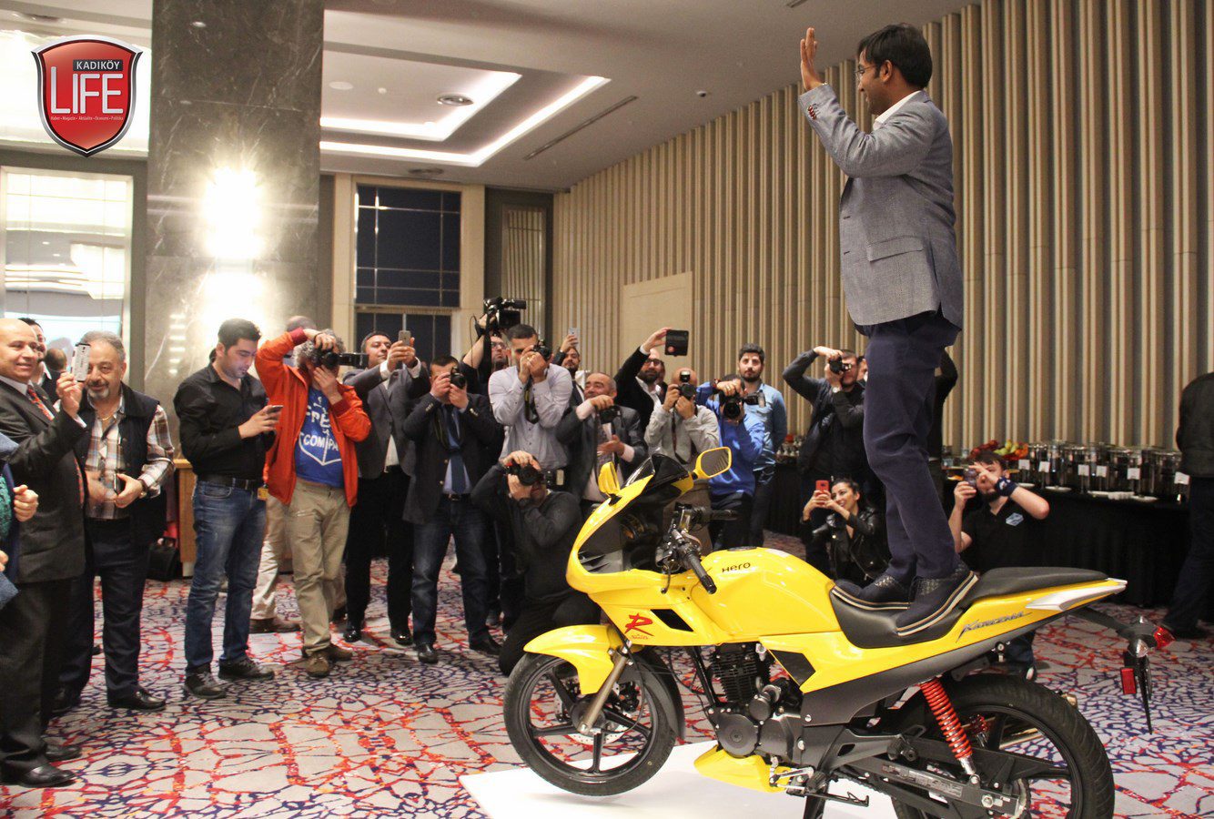 Hero Türkiye Genel Koordinatörü M. Sait Orhan, Hero Türkiye Yönetim Kurulu Üyesi M. Yusuf Soysal ile Hero Türkiye Servisler ve Servis Sonrası Hizmetleri Müdürü Serhat Kurakbelli, Türkiye genelinden basın mensuplarını Wyndham Grand İstanbul Levent Hotel’de ağırladı. Türkiye’de yeni atılımları hayata geçirmeye hazırlanan firmanın Hindistanlı yöneticisi Pranchal Srivastora, buluşma finalinde markanın güvenirliliğini göstermek için Hero modelinin üzerine çıkarak objektiflere poz verdi.