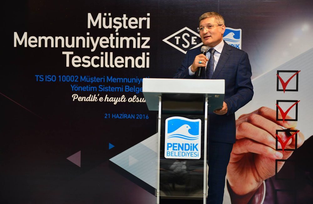 TSE Başkanı Sebahattin Korkmaz ise, Pendik Belediyesi’nin yönetim sistemi elemanlarını doğru ve yerinde kullandığını görmekten mutluluk duyduğunu belirterek; “Yönetim sistemleri, belediye hizmetlerinin ölçülebilir bir alana çekilmesi ve bunların içselleştirilebilmesi için çok önemli. Esas olan, bizden beklentileri olanları memnun etmek. Pendik Belediyesi, bu anlamda hem iç müşterilerini yani çalışanlarını hem de dış müşterilerini yani hizmet alanları memnun ederek, bu belgeyi almaya hak kazandı” dedi.