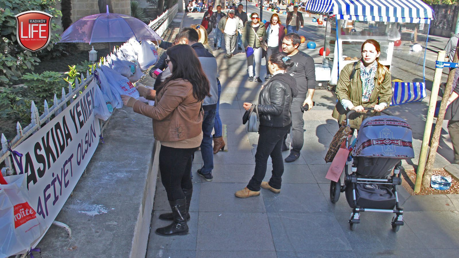 Uygulamanın ilk gününde Kadıköy Life Dergisi ile buluşan yardımseverler, Caferağa sakinleri ve esnaflar, 24 saat yaşamın devam ettiği Bahariye Caddesi’ni seçti. Aya Triada Kilisesi’nin caddeye bakan parmaklıklarına asılan poşetli yemekler, sahiplerini beklemeye başladı.